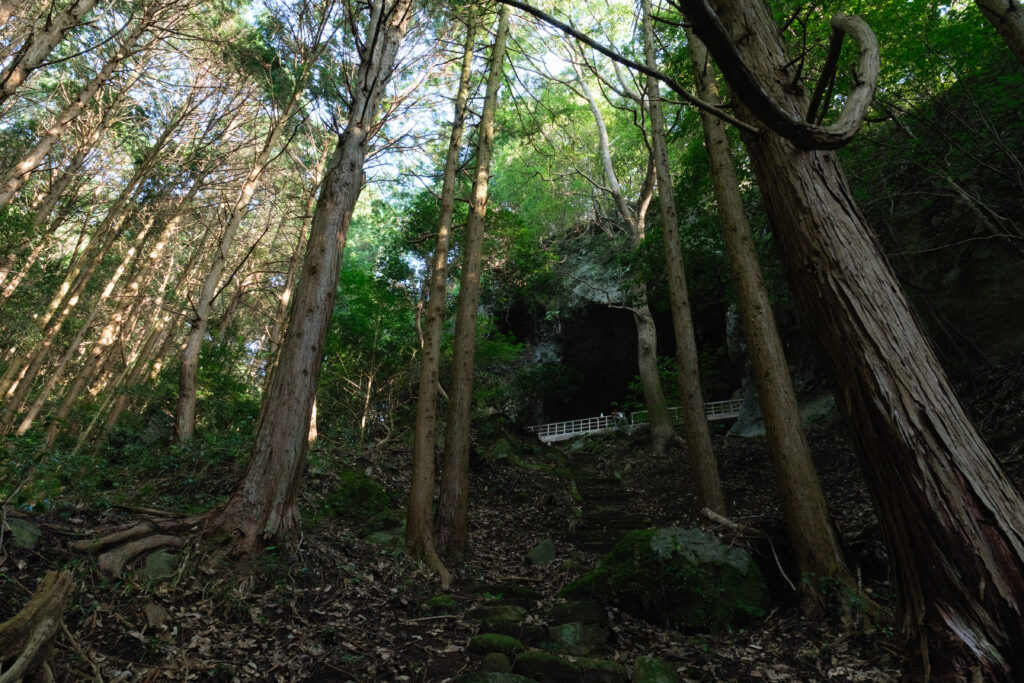 八面山を遥拝するように、岩窟にひっそりと佇む金色妙見宮。